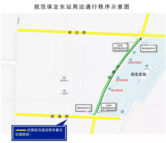 近日,保定市公安局交通警察支队公布了“关于规范保定东站周边通行秩序的公告”,显示,开泰街的顺通至顺达路段实施区间限时通过措施,经行车辆通过此路段时间不得超过5分钟,全路段禁止停车。驶入此路段后限时5分钟内驶离该路段或驶入停车场,对违反上述规定的违法车辆进行电子警察抓拍。