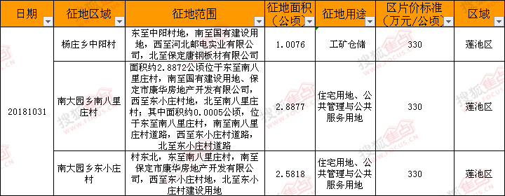 3.征地丨10.31保定市莲池区征地3宗 总面积逾97亩