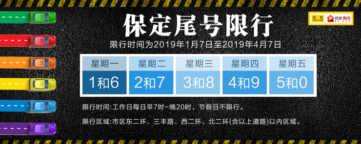 搜狐焦点楼市快讯,据保定市政府网,12月27日,保定市人民政府办公厅发布《关于继续实行常态化2个尾号限行的公告》,公告显示,保定市限行尾号变化。2019年1月7日至2019年4月7日,我市将继续实施常态化2个尾号限行,工作日周一至周五分别限行1和6,2和7,3和8,4和9,5和0,以车辆号牌最后一位阿拉伯数字为限行依据。