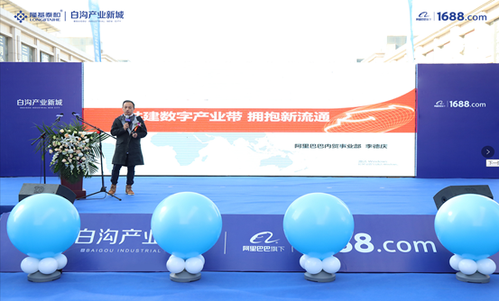 随后阿里巴巴1688产业带&营销生态部总经理李德庆先生上台演讲,他对阿里巴巴1688构建数字化产业带进行了系统性解读,剖析了阿里巴巴1688电商服务中心落子白沟的战略考虑,他表示双方合作未来前景十分广阔,展望了与白沟产业新城未来规划和愿景,期待后续双方合作共赢,共享发展硕果。