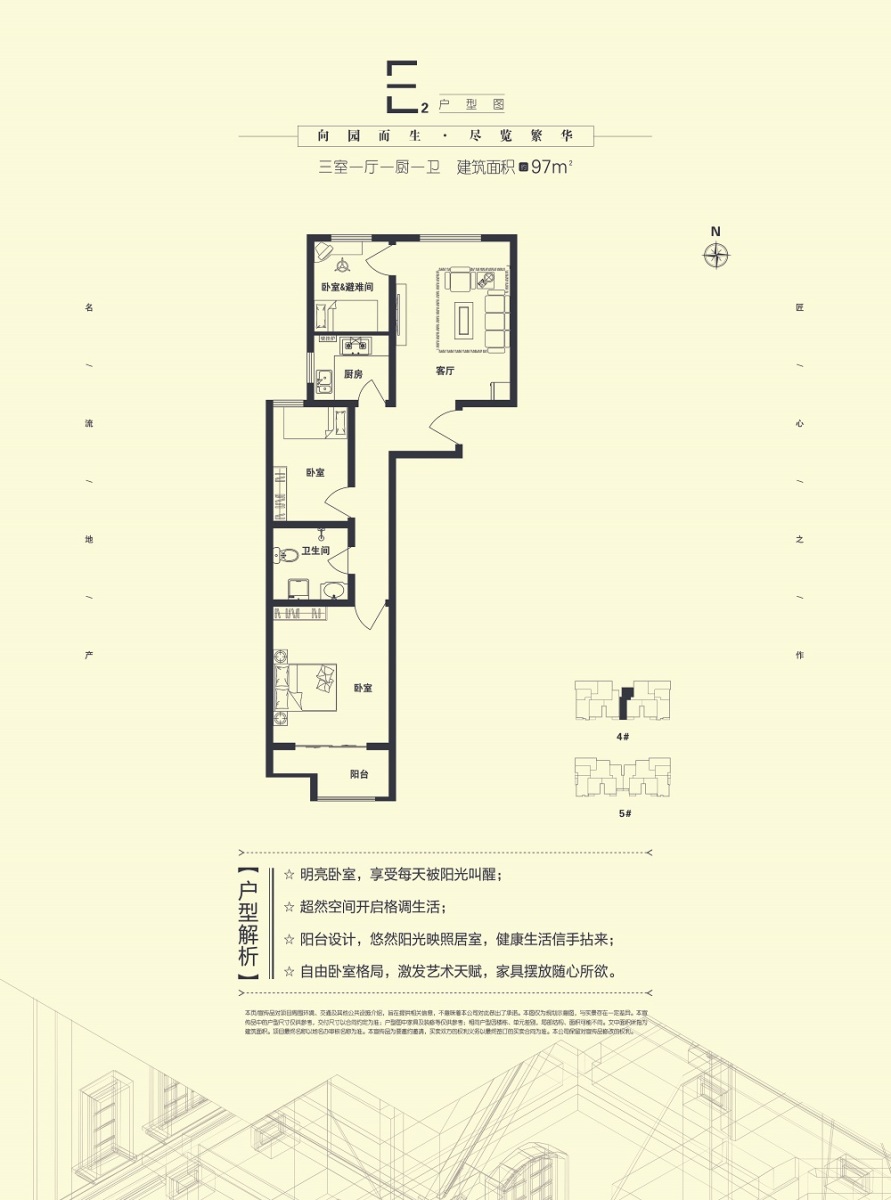 e2户型-3室1厅1卫-97.0㎡