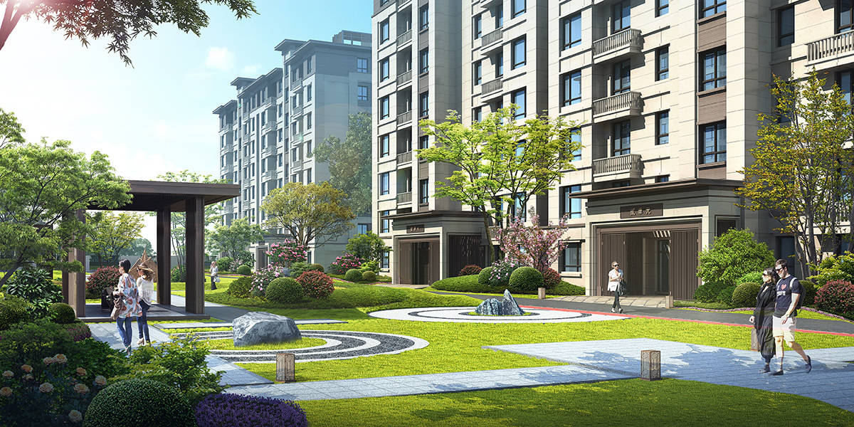小区建筑采用新亚洲风格,将传统意境和现代风格对称运用,使景观与建筑风格相协调,既注重建筑层次感的过渡,也注重对外私密感和对内开放性,从而打造成适合当代人居建筑范式。摒弃了过于复杂的肌理和装饰,简化了线条,包含了些许中式韵味,在景观上继续延用新亚洲风格贯穿整体,并植入文人园林“自然”愿景,打造“水、月、桥、竹、石”五重景观意境,通过异步异景、五重景观来传承宋式美学,让业主可以在具有东方文人情怀的园林精院中感受文学意境诗情画意,感受人与自然的亲和感。