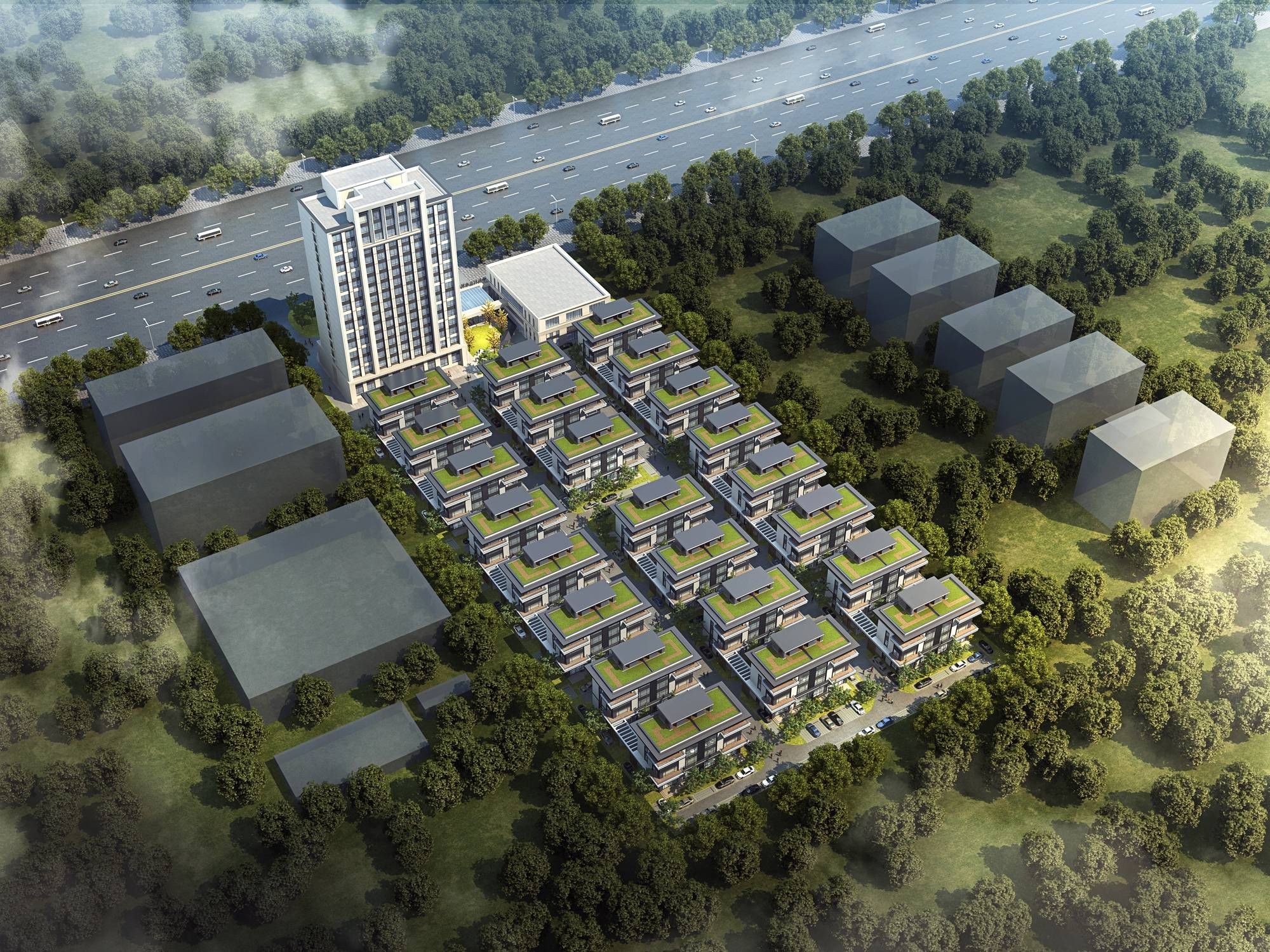 高品质低容积率独栋园区,容积率仅0.9,建筑密度低于30%。