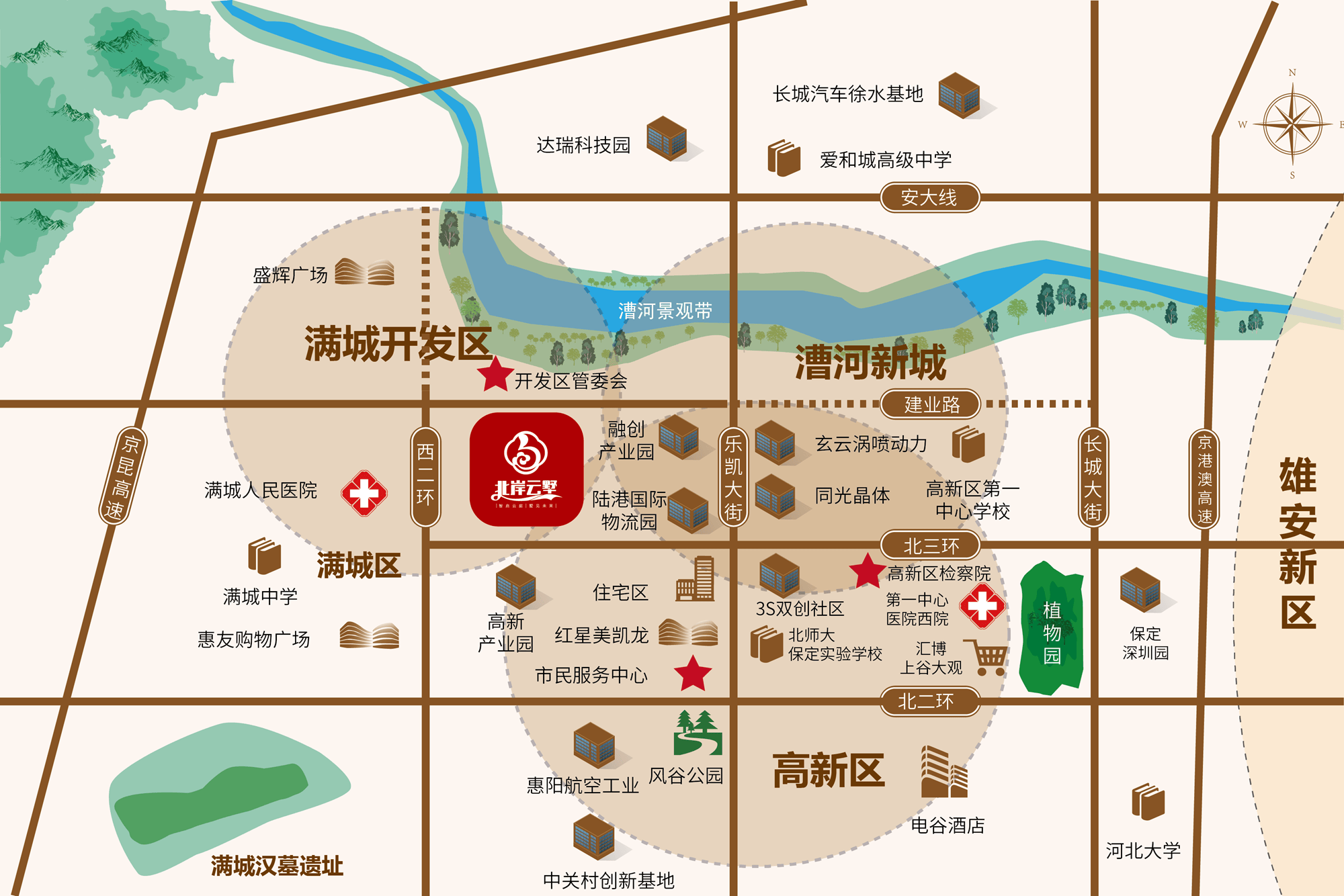 乐凯大街、西二环、北三环、安大线、容易线、京昆高速、荣乌高速,四通八达;