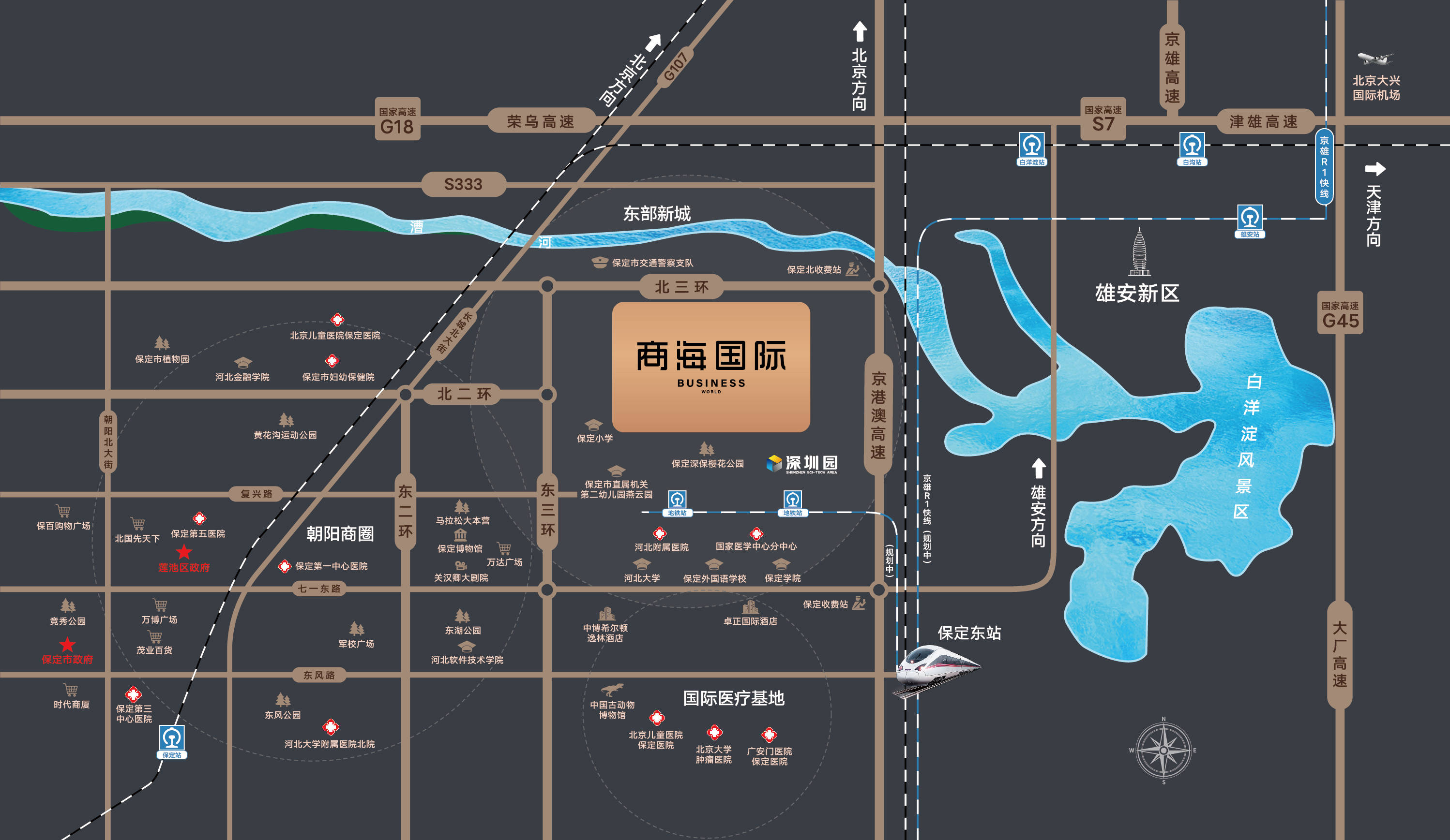 项目北邻北三环,东近京港澳高速,西邻学苑路,距离保定高铁东站7.6公里,仅需10分钟车程,30分钟内外部交通四通八达;