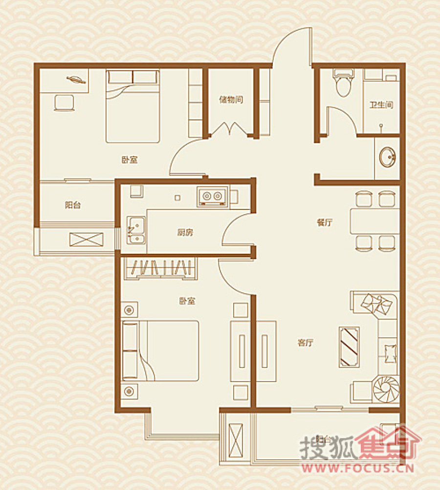 两室两厅一卫约88.79平米E1-2室2厅1卫
