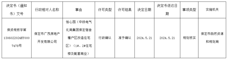 规划核实丨保定广茂地产恬心园项目获规划核实