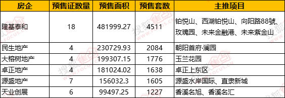 另外2019年新增供应冲入前5的房企还有源盛地产、天业创展。其中源盛地产凭借旗下的直隶新城、源盛水岸国际2个项目,获得7张预售证、新增供应1605套共计156032.3平方米预售面积。天业创展凭借香溪名旭、香溪名汇2个项目,获得6张预售证,新增房源1227套,新增供应面积99497.25平方米。