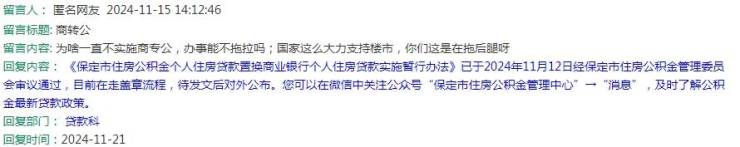 2024年11月21日保定市住房公积金管理中心贷款科回复: