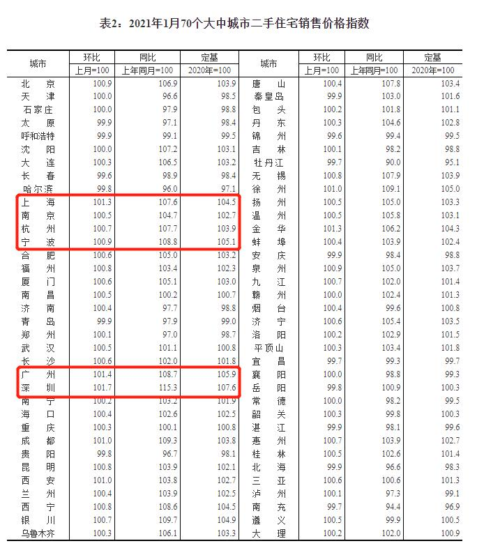 1月4个一线城市新房价格领涨 深圳二手房领涨全国