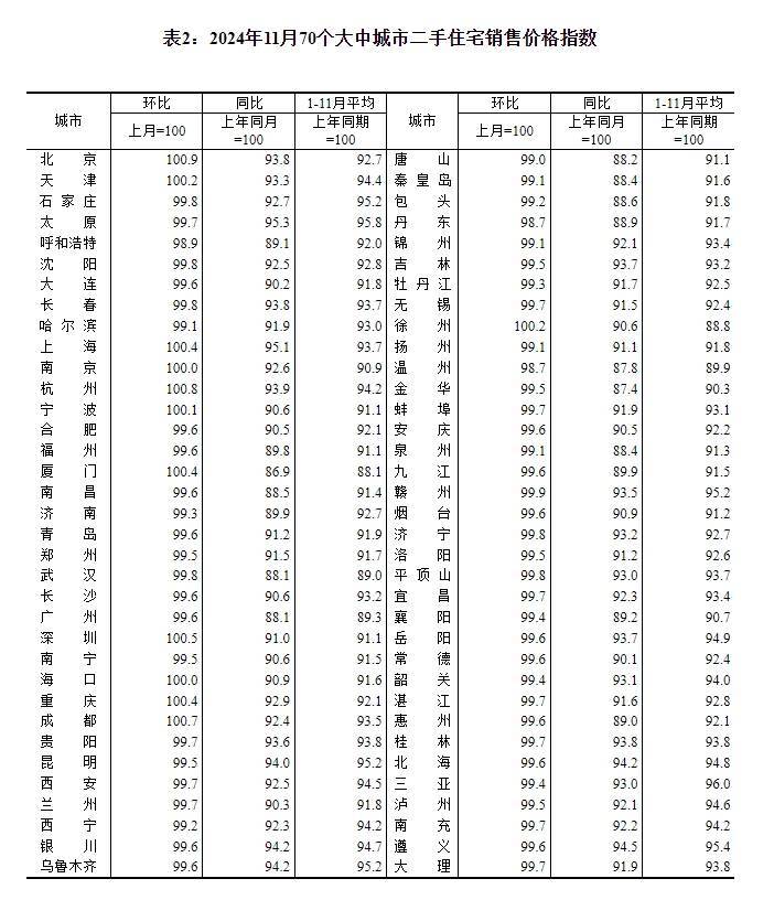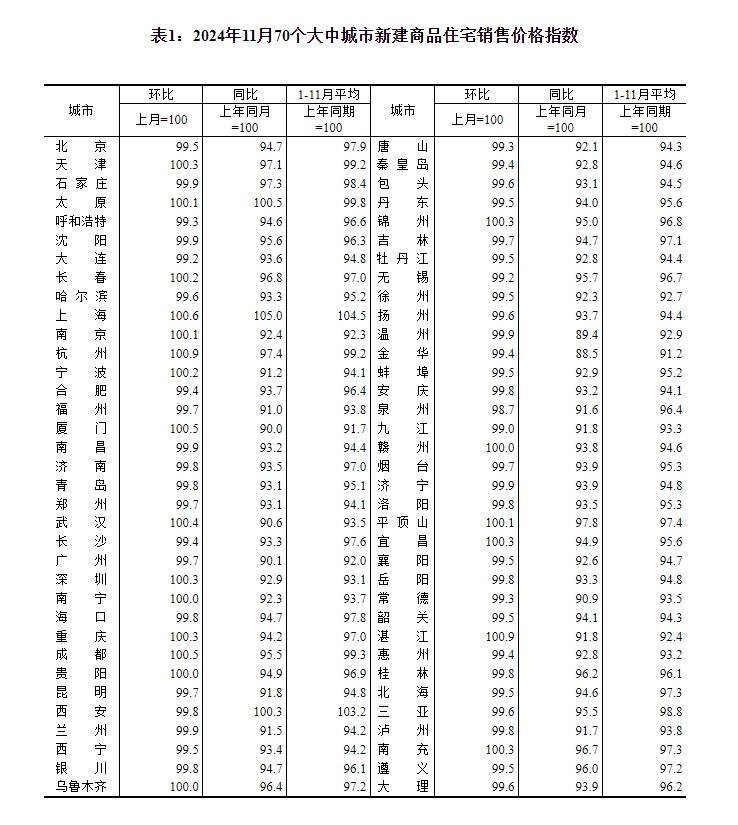——国家统计局城市司首席统计师王中华解读2024年11月份商品住宅销售价格变动情况统计数据