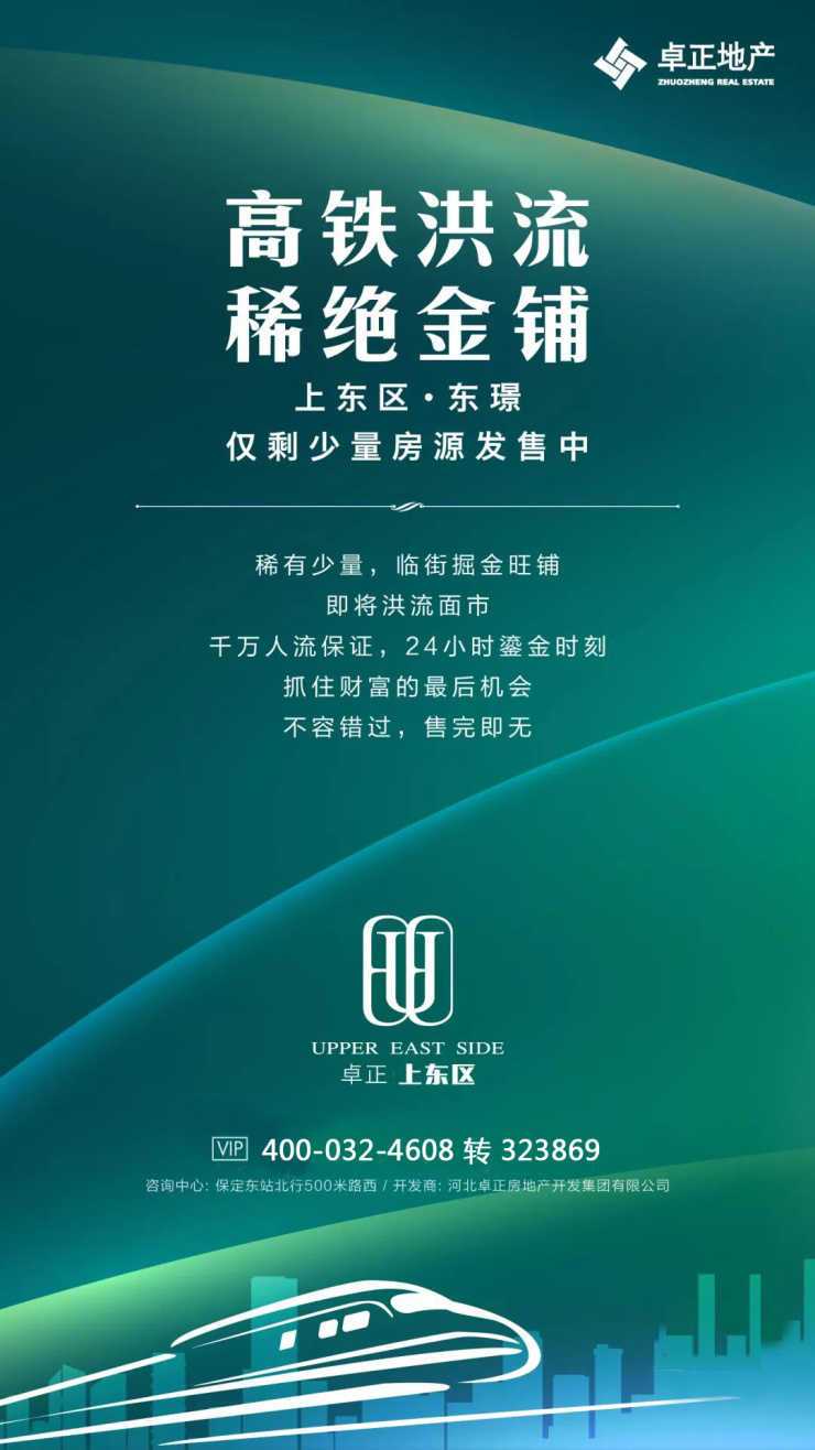 10月20日,卓正上东区·东璟黄金旺铺限量首开。坐拥高铁百万人流,毗邻白洋淀大道与开泰街两条交通动脉,不可错过的财富传奇!