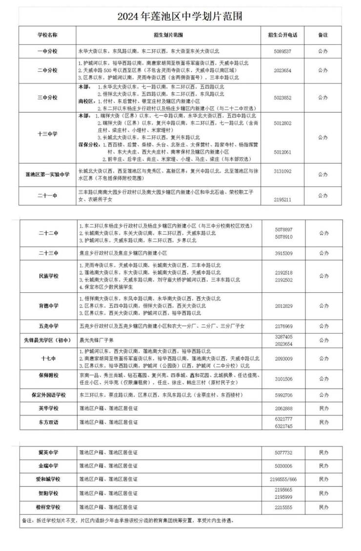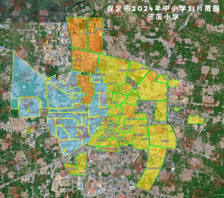 注:本图为保定主城区2024年义务教育阶段学校中小学招生划片范围示意图,仅供参考,实际入学范围请与教育部门核实。
