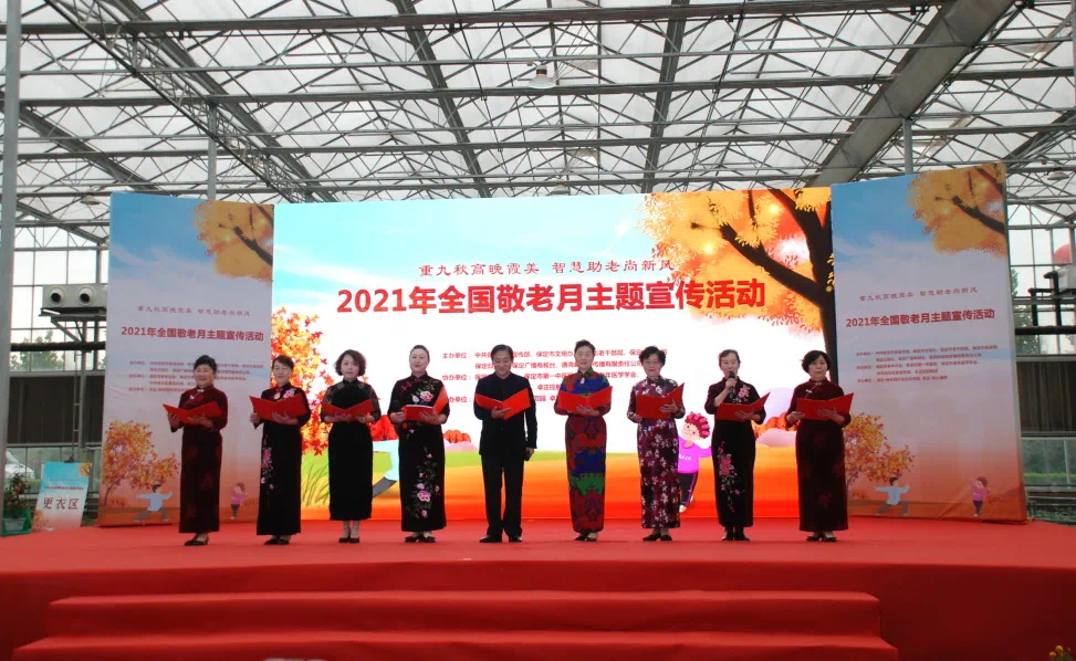 金秋送爽,岁岁重阳。在全市上下深入贯彻落实市第十二次党代会精神、奋力推进现代化品质生活之城建设,激情奋进十四五、再造一个新保定之际,10月14日保定市在卓正神农现代农业示范园成功举办了以“重九秋高晚霞美 智慧助老尚新风”为主题的2021年“敬老月”主题宣传活动。