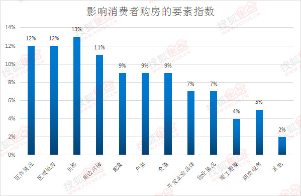 综合以上对购房者所能承受的房屋总价以及月还款能力的调查来看,价格成为2017年影响保定消费者购房的首要因素,分析原因,或是近年来飙升的房价使购房者更加关心是否有承担买房的经济能力,对于刚性购房需求和改善型刚性需求的购买群体来说,资金问题还是影响置业的重要因素。其次,区域地段依旧是影响保定购房者选房的重要因素,表明消费者对周边环境要求高,可见随着生产力的发展,人们对生活质量和居住舒适度的需求也日益提高,更加注重享受生活。另外,证件情况这一要素对购房者的影响没有变化。分析认为,随着保定房地产市场对于房地产项目的严查及整顿,证件要素对消费者的影响力越来越大,消费者选择证件情况作为首要考虑因素的比重上升,体现了保定消费者日趋理性的购房观念。户型、交通、配套等因素对于购房者日后居住的舒适度与便捷度有一定的关系,但随着交通条件的日渐改善和生活水平的不断提高,出行不再是难题。