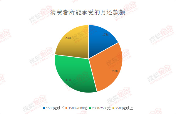 5、消费者所能承受的月还款额:2000-2500元占比较大
