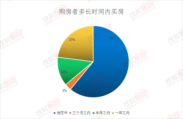 数据显示,61%的购房者还处于迷茫中,据分析,这部分人群或许是因为对于房产走势尚不明确,正处于观望状态,其次部分消费者是因为目前没有购房能力。搜狐焦点网建议,购房者应在明确认知自身购买能力和居住要求的情况下,合理把握购房时机。