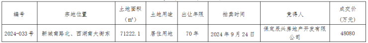 公示丨保定西城1宗居住用地成功出让 国控置业拿地