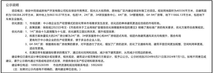 保定科智工坊项目建设工程设计方案优化规划公示