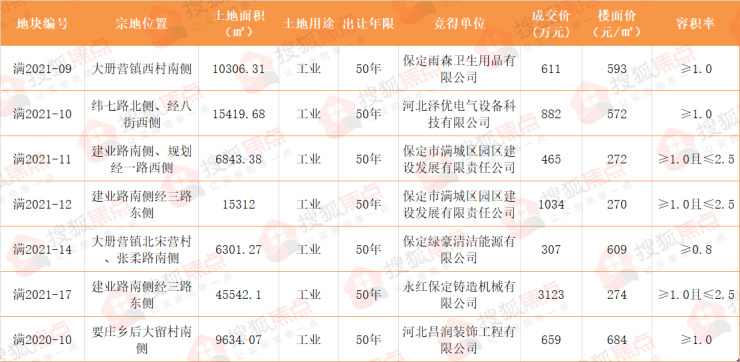 土拍丨6.28满城区7宗工业用地挂牌出让 成交总面积164亩