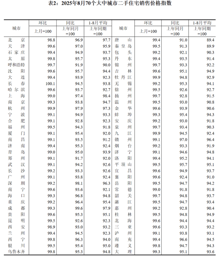 数据显示,8月份一线城市二手住宅销售价格环比下降1.0%,降幅与上月相同。其中,北京、上海、广州和深圳分别下降1.2%、1.0%、0.9%和0.8%。二线城市二手住宅销售价格环比下降0.6%,降幅扩大0.1个百分点。三线城市二手住宅销售价格环比下降0.5%,降幅与上月相同。