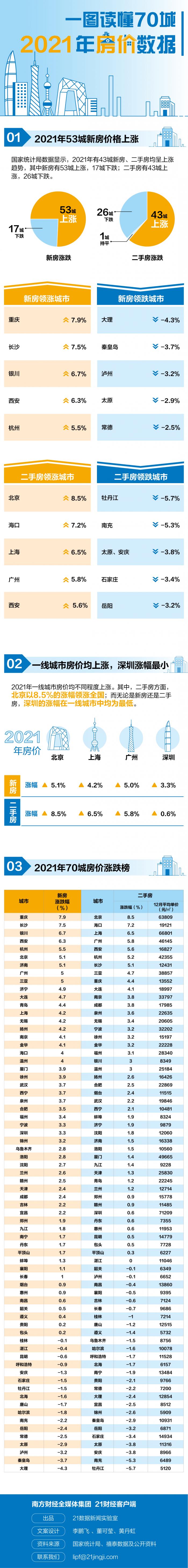 据21数据新闻实验室统计,2021年有43城新房、二手房均呈上涨趋势,其中新房有53城上涨,17城下跌;二手房有43城上涨,26城下跌。