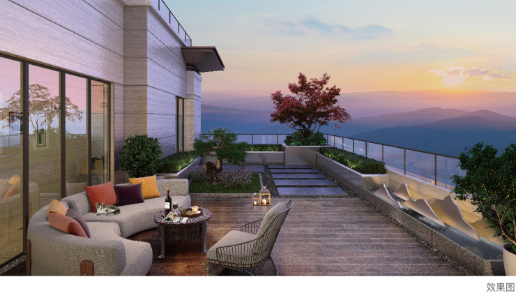 如何平衡繁华与自然?露台的出现,不仅仅丰富了人们的生活雅趣。作为生活空间的延伸,露台将风景与居室优质衔接,安放着生活的雅致意趣,留驻着半山院落最为诗意的时光。