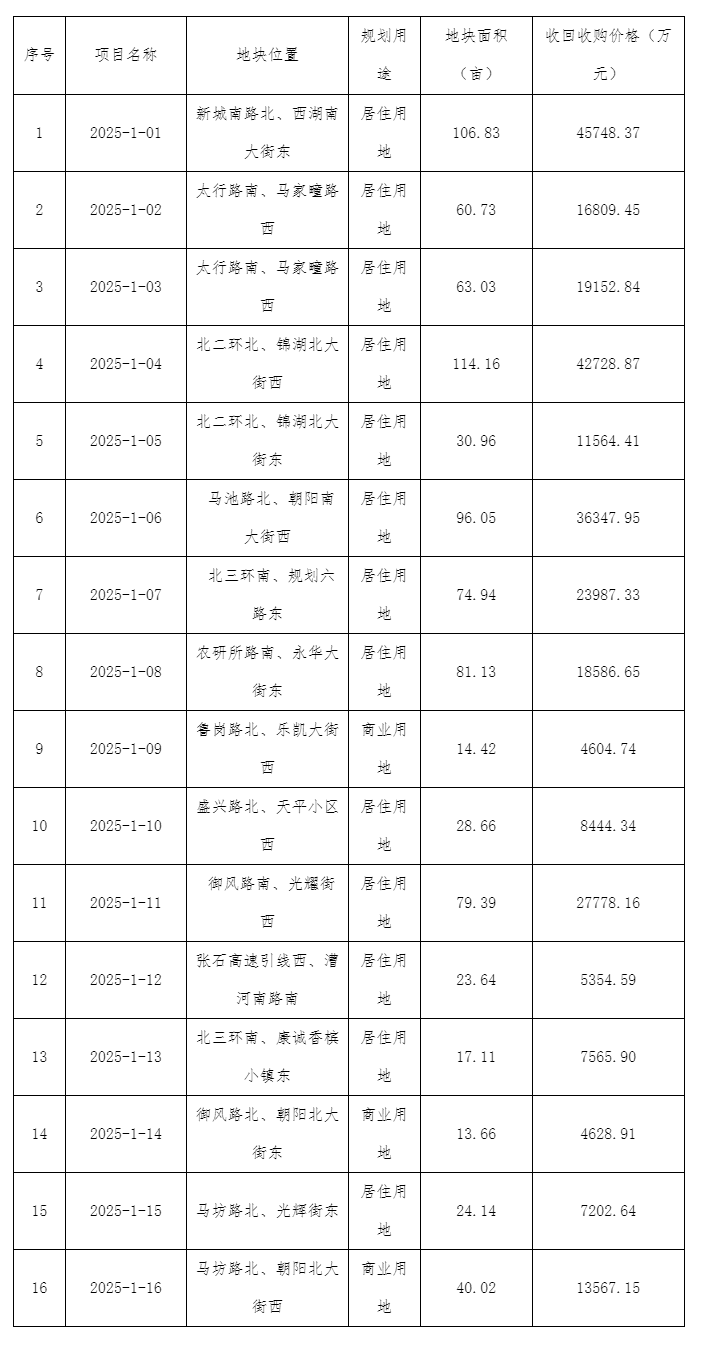 2025年保定市本级土储债项目(第一批)收回收购价格公示