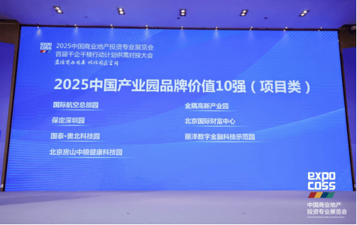 国际航空总部园、保定深圳园、国泰·奥北科技园、北京房山中粮健康科技园、金隅高新产业园、北京国际财富中心、丽泽数字金融科技示范园荣获2025中国产业园品牌价值10强(项目类)