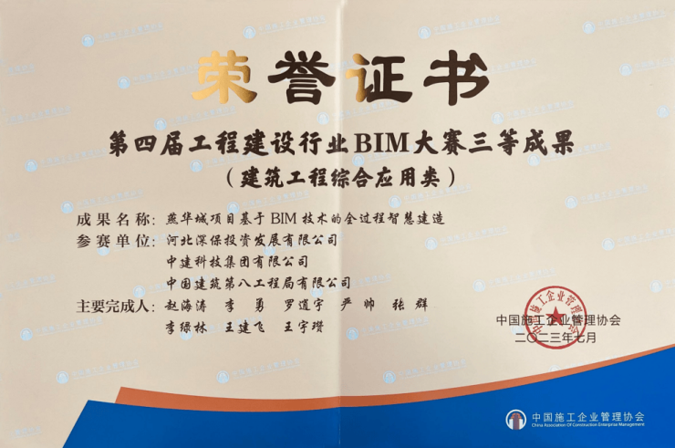 河北省第四届建设工程燕赵(二十二冶)杯BIM技术应用大赛中,燕华城项目一标段凭借“全过程智能建造”实践,斩获三类成果;二标段以BIM技术深度赋能施工管理,摘得优秀成果奖,成为大赛双料赢家。