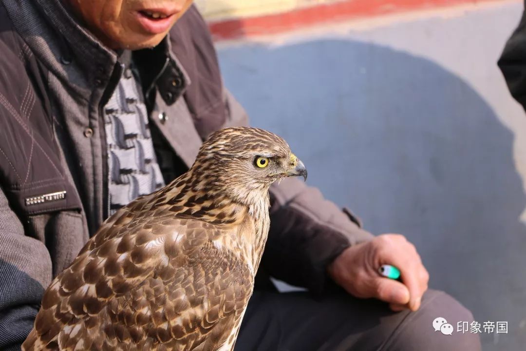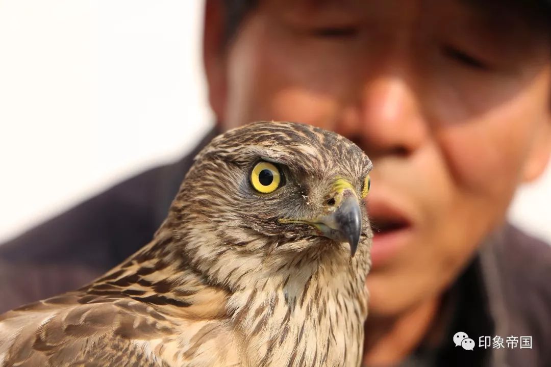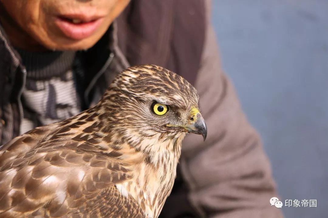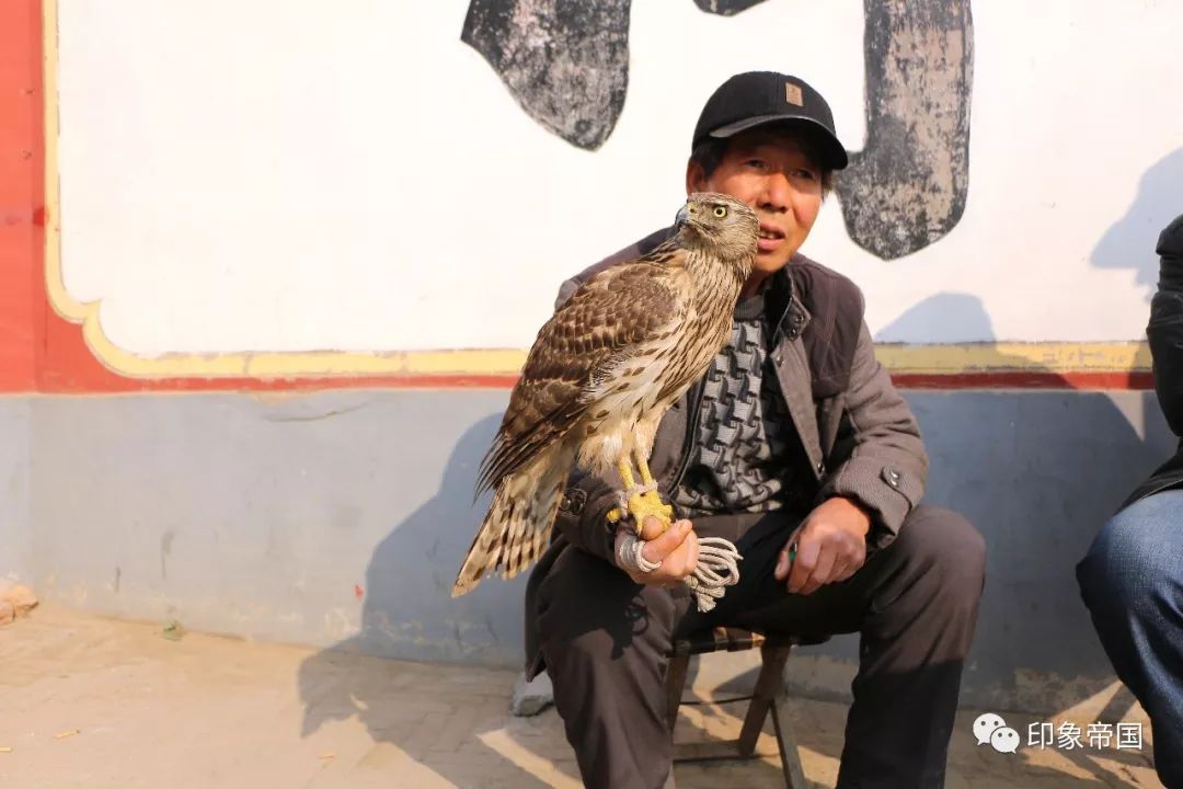 寺庙前养鹰的老人