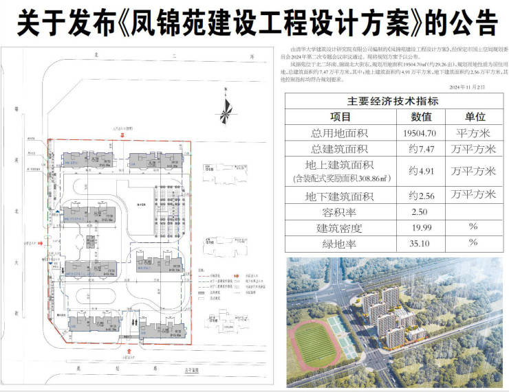 《凤锦苑建设工程设计方案》获市规委审议通过,位于北二环南、锦湖北大街东,规划用地面积29.26亩,总建筑面积约7.47万平方米,地上建筑面积约4.91万平方米,地下建筑面积约2.56万平方米。