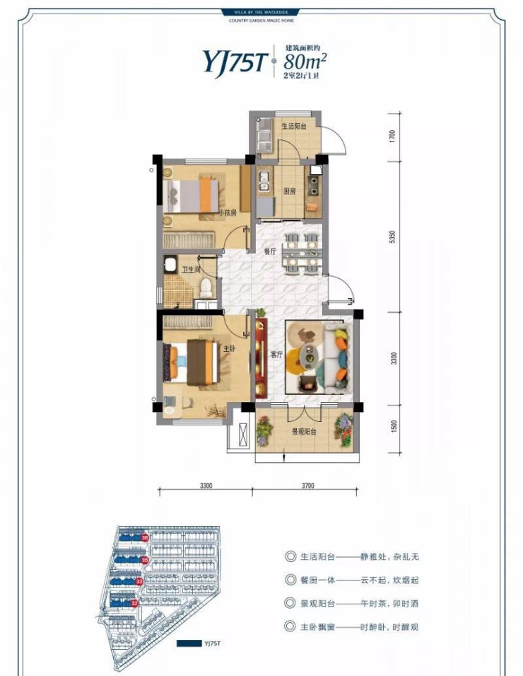 山水有意,酣享恣意阳光,专属舒适两室空间