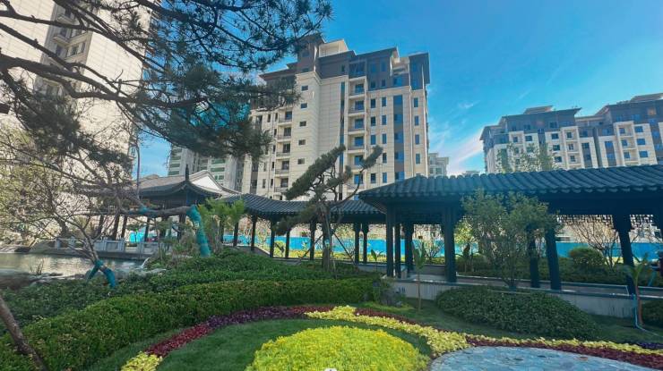 漫步园林示范区之中,阳光倾洒,使融融绿意与清新的空气浸润着大家全部的身心,让人随时感受园林之美。亭、廊、水、石、花、木,与一切相融,在亦动亦静中感受苏式园林的魅力。