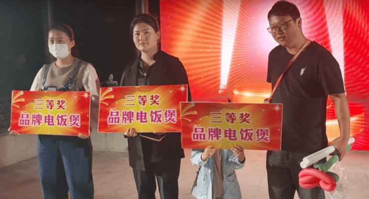 现场活动流程,精彩不断,项目特邀房产抖音大V《保定萍姐》与项目营销总监杨总进行大抽奖环节,精品电饭煲、品牌山地车、爱玛电动车多重好礼抽不停,使活动气氛推向高潮。