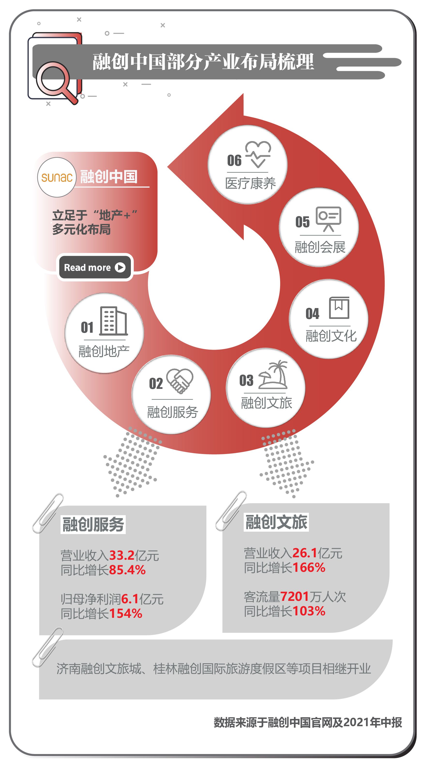 融创中国表示,公司是立足于“地产+”多元布局,集地产、文旅文娱、生活服务为一体的大型集团化企业。下设融创地产、融创服务、融创文旅、融创文化、融创会议会展、融创医疗康养六大战略板块。