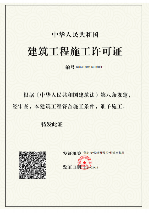 证件丨保定华中地产紫华学府项目办理施工许可手续