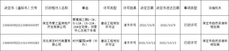 证件丨保定两楼盘获发建设工程规划许可证 含爱情城、时代馨园