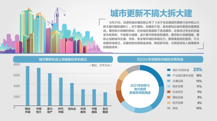 《通知》在各地政策密集出台之际适时从全国层面划出城市更新重要底线,确定了未来城市更新的主基调,核心目的就是要推动由过去的单一“开发方式”转向“经营模式”。整体来看,“在实施城市更新行动中防止大拆大建”将有效避免重走城市粗放开发建设老路,对保留特定时代建筑、保持老城格局、延续城市特色风貌将起到重要作用,体现了城市内涵发展、高质量发展的核心要义,是我国城市建设管理水平进一步提升的重要体现。