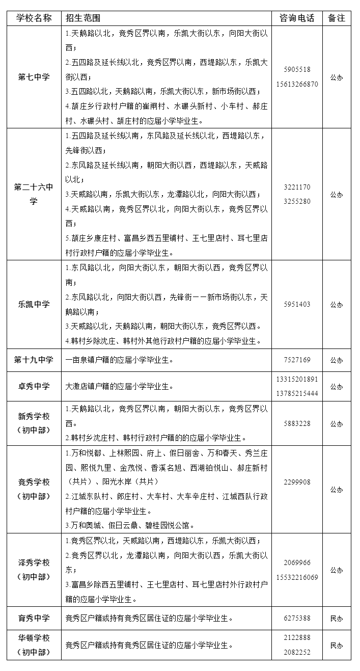 咨询电话(竞秀区教体局普教科):3089212(工作日及报名日8:30——12:00 14:30——17:30)