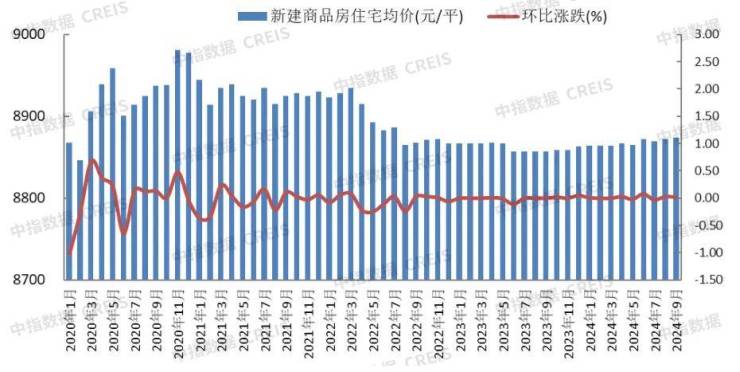 图:2020年-2024年9月保定新建商品住宅销售均价及环比走势