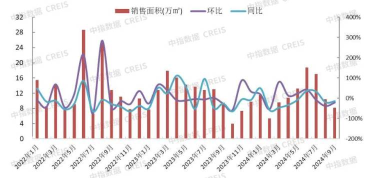 图:2022年-2024年9月保定主城区商品住宅(不含保障房)月度成交情况