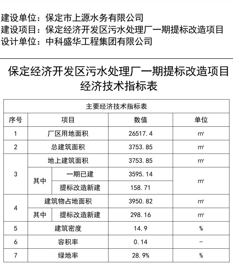 保定经开区污水处理厂一期提标改造项目建设工程规划公示