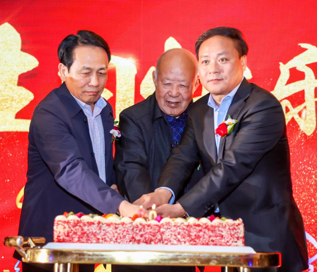 首先迎来公司庆生的环节,董事长辛会来、总裁辛群来与李明甲先生共同为卓正地产庆生,切蛋糕~