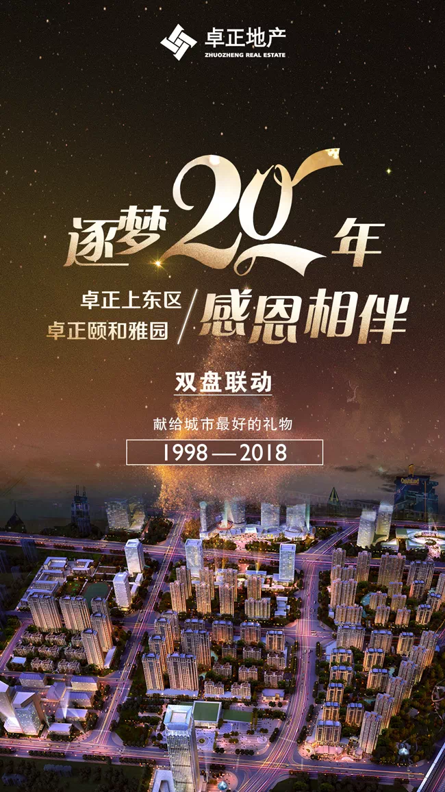 20年春秋更替,20载斗转星移,20年风雨兼程,20年艰苦创业,时光是较好的见证,品质是无声的保证。20年是百年卓正的新起点,是卓正地产踏上“城市生活运营商”新征程的开始,未来卓正人将为业主打造多维度、深度化的服务体系,谱写卓正地产新的美好篇章。