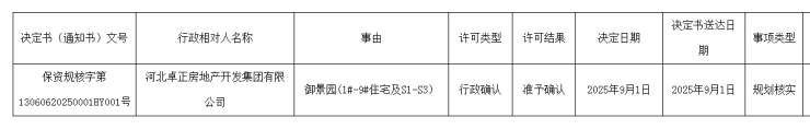 2025年9月2日,保定市自然资源与规划局发布规划核实,卓正·御景风荷项目(御景园)1#-9#住宅及S1-S3获规划核实。来源:保定市自然资源和规划局…