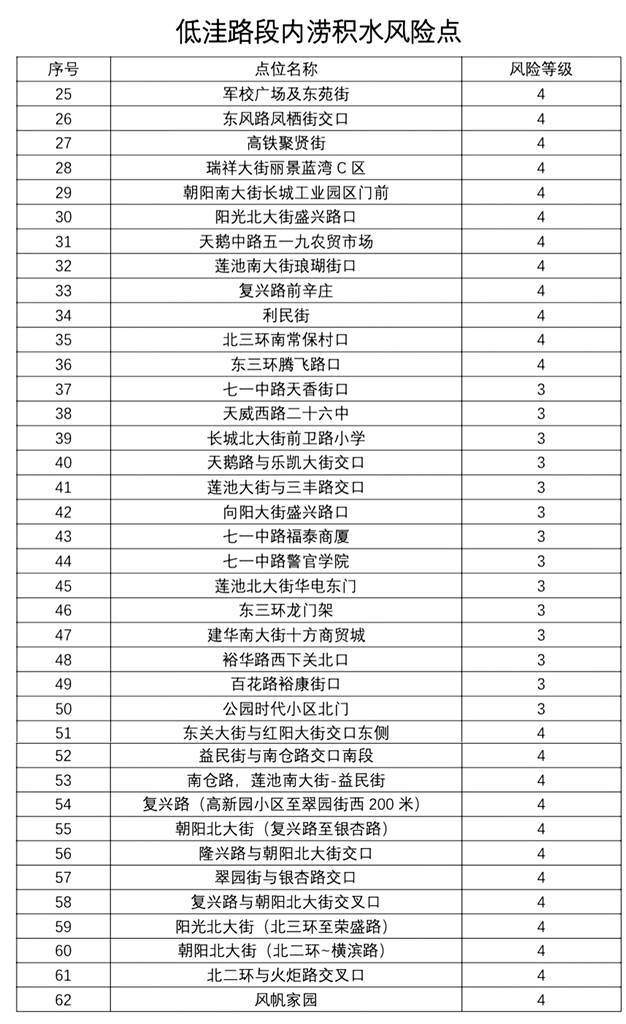 近日,记者从保定市城市管理综合行政执法局获悉,7月21日17时,保定市气象局和保定市城市管理综合行政执法局联合发布保定市主城区(莲池、竞秀、高新)内涝气象风险预警,并发布我市主城区在遇短时强降雨时,可能出现积水情况并影响通行的积水风险点共计62处。