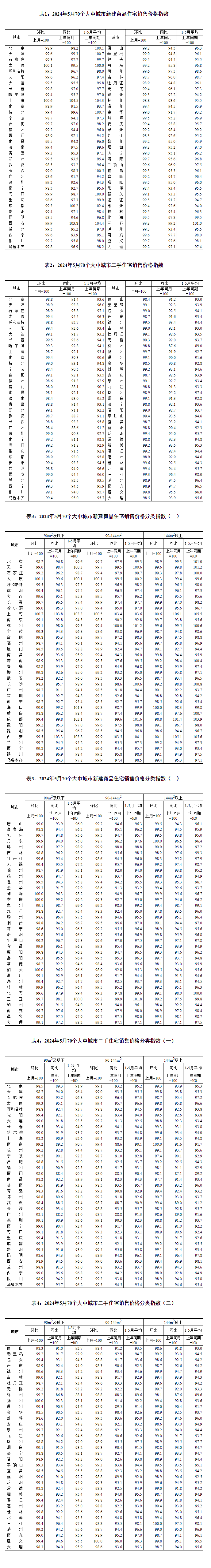 2024年5月份,70个大中城市中,各线城市商品住宅销售价格环比下降、同比降幅略有扩大。
