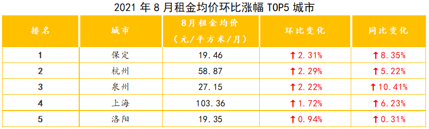 “从宏观层面来讲,杭州、上海、保定等城市建设进程较快的典型城市有就业需求多、人口流量高等特征,带动租赁需求有所增加,租金涨幅先进。”对于8月杭州租金上涨,诸葛找房如是认为。