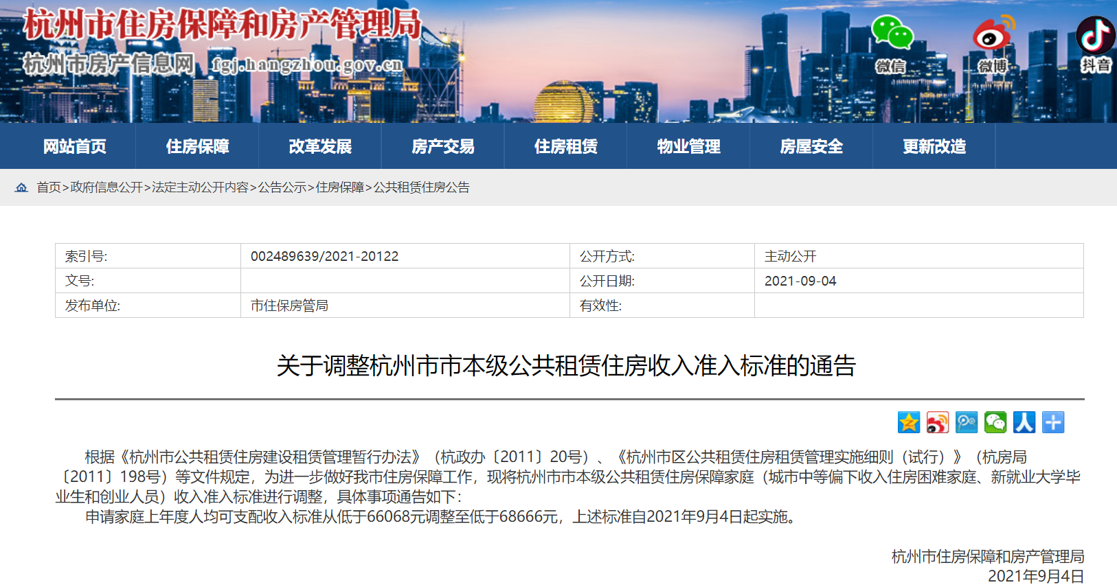 杭州市住房保障和房产管理局网站截图